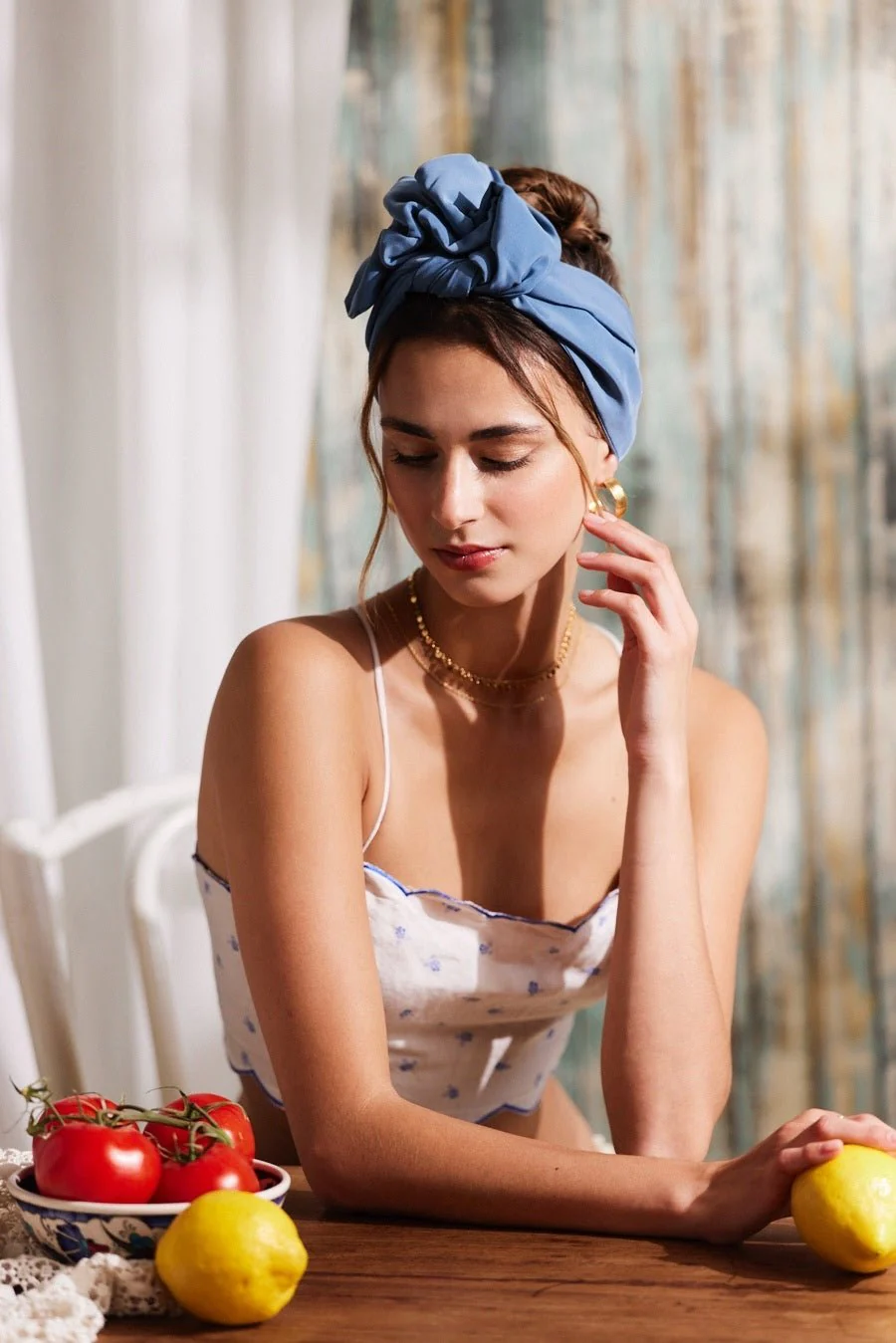 Bandeau cheveux à tige métallique - Bleu gris